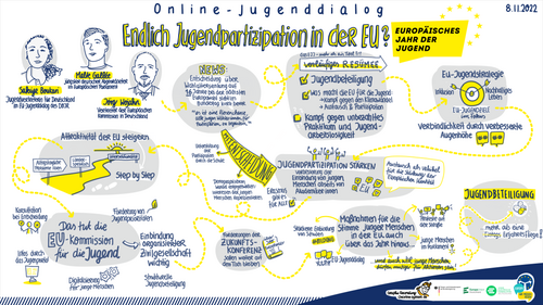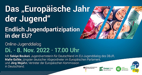 Bringen Sie Ihre Anliegen und Fragen ein bei unserem Online-Jugenddialog "Das "Europäische Jahr der Jugend" – Endlich Jugendpartizipation in der EU?" am 8. November um 17 Uhr und treten Sie in den virtuellen Dialog mit Sakiye Boukari, Jugendvertreterin für Deutschland im EU-Jugenddialog des DBJR, Malte Gallée, jüngster deutscher Abgeordneter im Europäischen Parlament, und Jörg Wojahn, Vertreter der Europäischen Kommission in Deutschland.