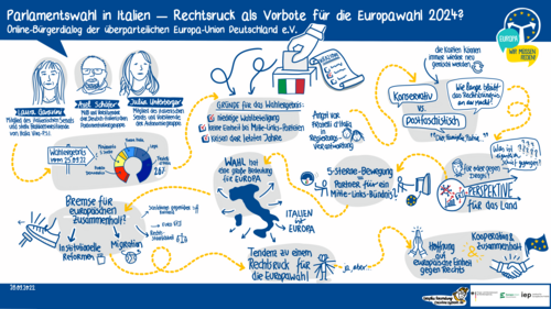 Fast 100 Teilnehmende nutzten die Gelegenheit und diskutierten mit Laura Garavini, Mitglied des italienischen Senats und stellv. Fraktionsvorsitzende von Italia Viva-P.S.I., Axel Schäfer, MdB und Vorsitzender der Deutsch-Italienischen Parlamentariergruppe, sowie Julia Unterberger, Mitglied des italienischen Senats und Vorsitzende der Autonomiegruppe, drei Tage nach der italienischen Parlamentswahl im Rahmen des Online-Bürgerdialogs „Parlamentswahl in Italien – Rechtsruck als Vorbote für die Europawahl 2024?“.