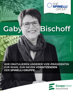 EUD-Vizepräsidentin Gaby Bischoff MdEP wurde am 25. Juni zur neuen Vorsitzenden der Spinelli-Gruppe im Europäischen Parlament gewählt. Die Gruppe vereint Abgeordnete aus den proeuropäischen Fraktionen, die sich für ein geeintes und föderales Europa einsetzen, und arbeitet eng mit der Union Europäischer Föderalisten zusammen. Gaby Bischoff ist die erste Frau in diesem Amt. Gaby Bischoff (S&D) übernahm den rotierenden Vorsitz von dem österreichischen Europaabgeordneten Lukas Mandl (EVP).