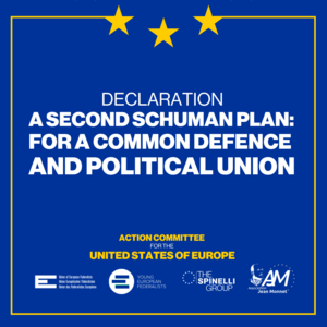 Am 9. Mai 2025 forderte das neu gegründete Monnet-Aktionskomitee für die Vereinigten Staaten von Europa einen Zweiten Schuman-Plan, der den Weg für eine gemeinsame Verteidigung und Sicherheit sowie eine europäische Föderation ebnen soll. Das Präsidium der überparteilichen Europa-Union Deutschland begrüßt und unterstützt die Erklärung, die am Europatag aus Anlass des 80. Jahrestages des Zweiten Weltkriegs und des 75. Jubiläums der Schuman-Erklärung veröffentlicht wurde.