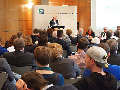 Die Flüchtlingskrise stand im Fokus des gemeinsamen Bundesausschusses von Europa-Union und Jungen Europäischen Föderalisten am 7. November in Berlin. Die Delegierten stellten einen Forderungskatalog auf, der eine gemeinsame europäische Asylbehörde ebenso umfasst wie die Errichtung humanitärer Zugänge und eine bessere Ausstattung der Vereinten Nationen und ihrer Unterorganisationen zur Finanzierung der Arbeit in den Flüchtlingslagern.