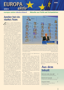 Online schon eschienen, in den nächsten Tagen auch bei Ihnen im Briefkasten: In der Ausgabe 4-2014 finden Sie Beiträge zur neu gewählten EU-Kommission, zum Thema "Krieg und Frieden - Europa und die neue Weltordnung" und anderen aktuellen Themen. Außerdem informiert Europa aktiv über die neue EUD-Straßenaktion "Gedankengang" und die bundesweite Bürgerdialog-Reihe zum transatlantischen Freihandelsabkommen "TTIP - Wir müssen reden!". Auch aus den Landes- und Kreisverbänden gibt es wie immer viele Neuigkeiten.
