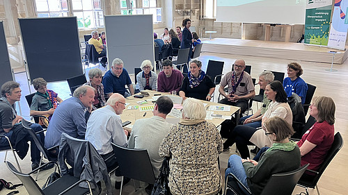 Am 1. Juni 2024 organisierten Europa-Union und JEF im Rahmen des Katholikentags in Erfurt Gesprächsrunden im World-Café Format. An drei Thementischen diskutierten insgesamt 170 Teilnehmende aus ganz Deutschland in drei Gesprächsrunden mit Abgeordneten des Europäischen Parlaments, des Bundestages und des Thüringer Landtages sowie mit Expertinnen und Experten von katholischen Fachverbänden über die Themenbereiche "Demokratie und Europawahl 2024", "Frieden, Migration und Flüchtlinge" sowie "Außen- und Sicherheitspolitik, Entwicklung und…