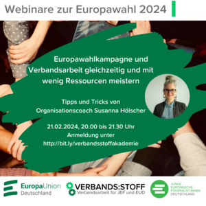 Wer kennt das nicht: man hat großartige Ideen für die bevorstehende Europawahlkampagne, ist jedoch damit konfrontiert, dass die verfügbare Man- und Womanpower im Kreis- oder Landesverband begrenzt ist. Zeitgleich müssen auch noch die üblichen Aufgaben der Verbandsarbeit wie Verwendungsnachweise & Co erledigt werden. In unserem dritten verbands:stoff Webinar geht es daher darum, wie begrenzte Ressourcen effektiv und treffsicher eingesetzt werden können.